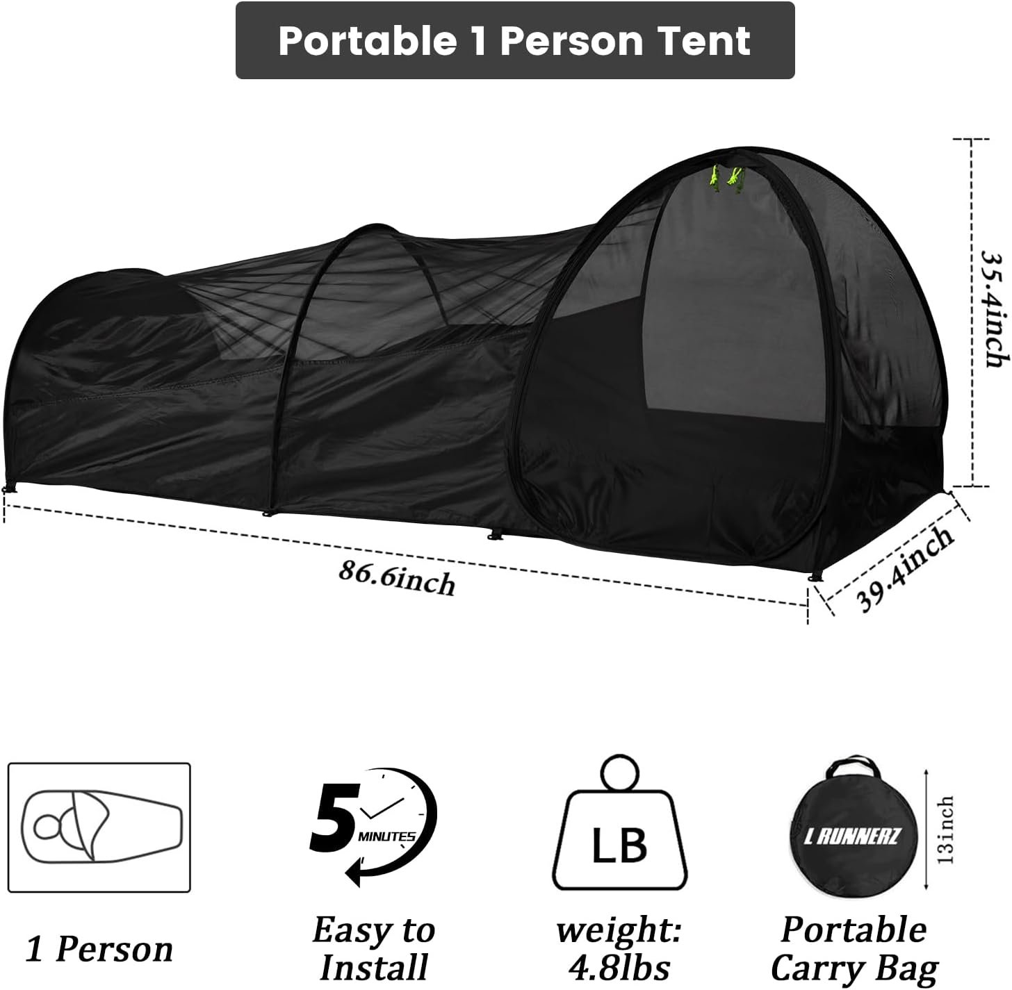 - Superior Durability – Crafted with unwavering dedication to quality, our one person tent is built to meet the demands of the great outdoors. The high-density mesh ensures longevity while offering optimal protection against insect intrusion. Its sturdy support structure guarantees stability even in unpredictable weather conditions.